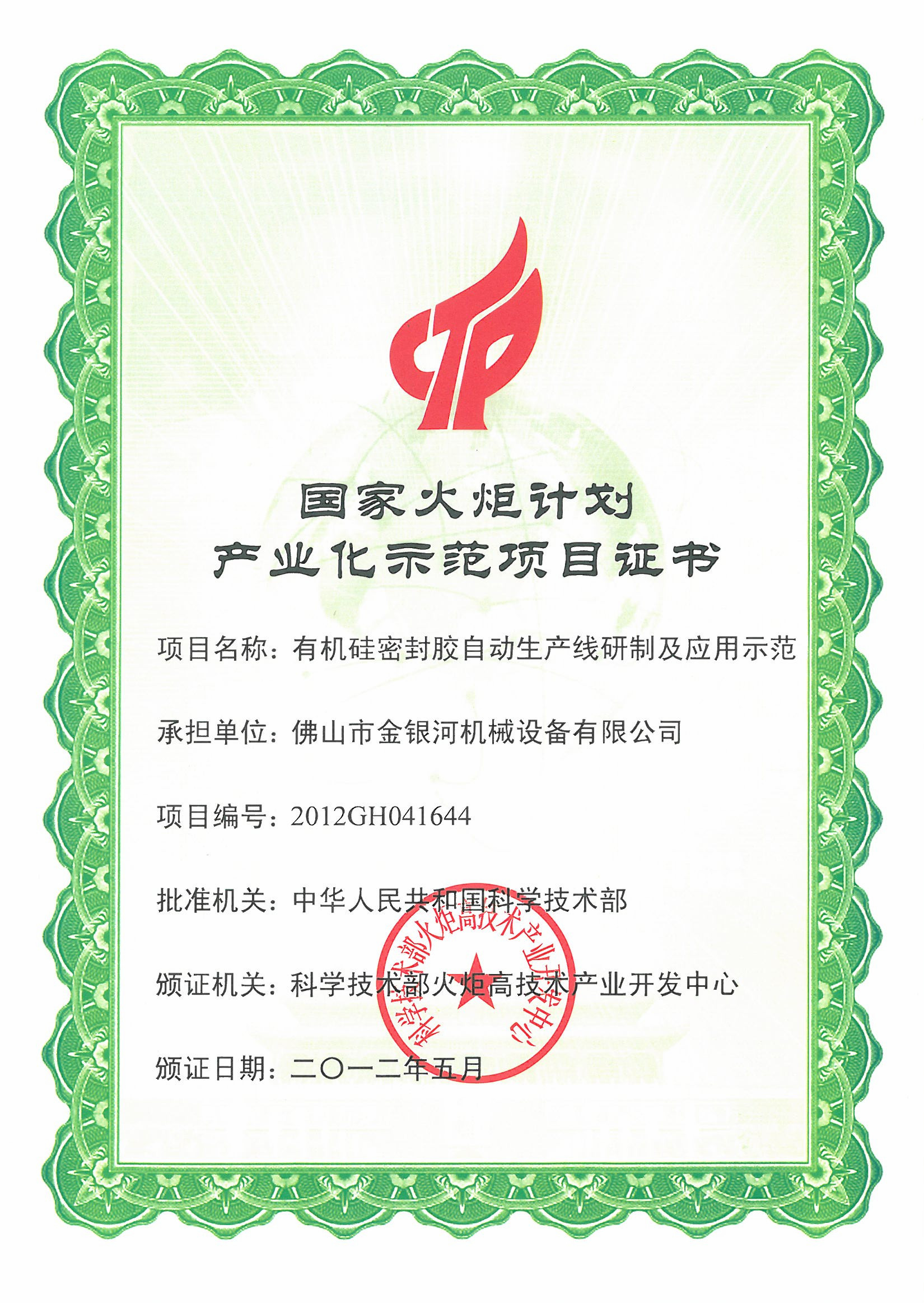 2012年5月,經科學技術部批準,操逼APP下载大全“黄色操逼视频软件密封膠自動生產線及應用示範”項目被列入國家火炬計劃產業化示範項目。