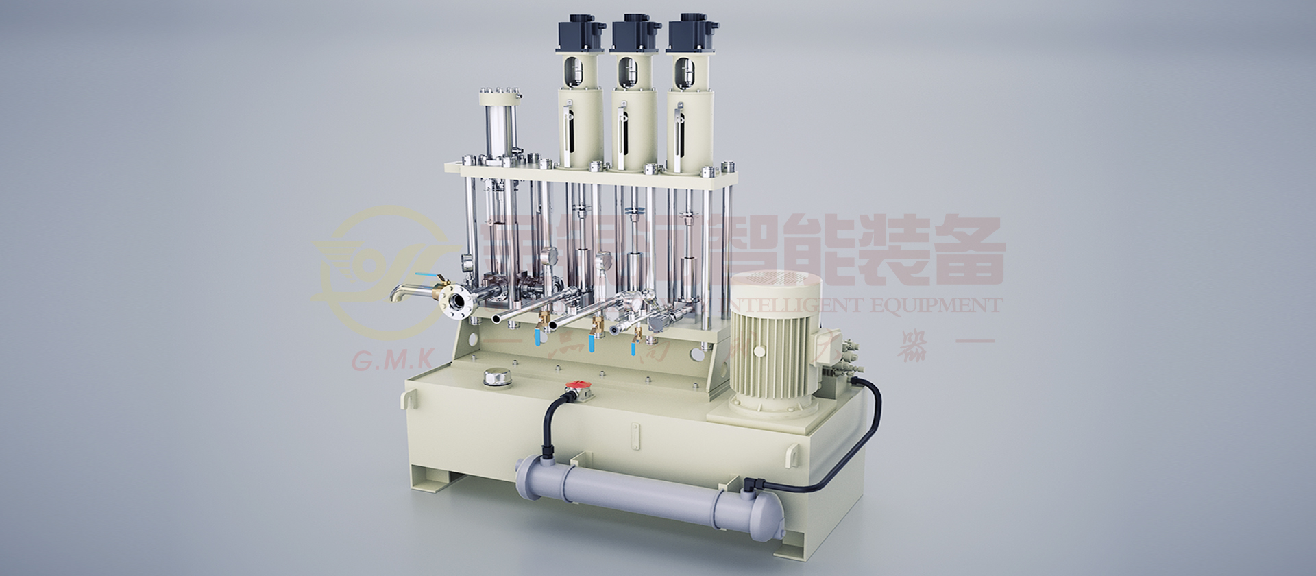 靜態混合機是由靜態混合器、液壓係統、定量計量係統、閥體、集成電控係統、氣控係統、機架等部件組成,其中靜態混合器是整套設備的核心。